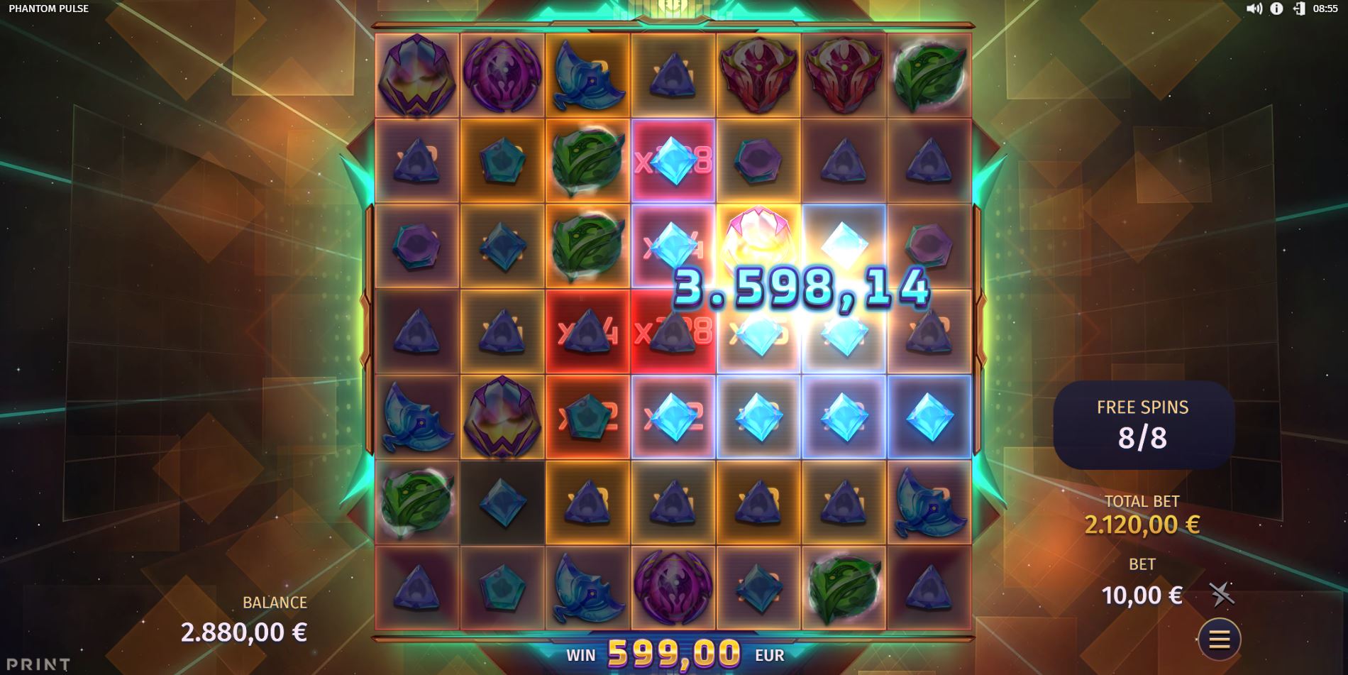 Two Free Spins modes elevate the core mechanics even more. Pulse Spins feature persistent multipliers that carry across spins, allowing wins to build throughout the bonus.